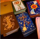 78 mystically illustrated cards - 74x120mm size printed on high quality silk matte laminated paper with matte gold edges. The deck comes with a delightfully decorated, sturdy flip box with teal and gold foils! Limited 1000 authentic decks